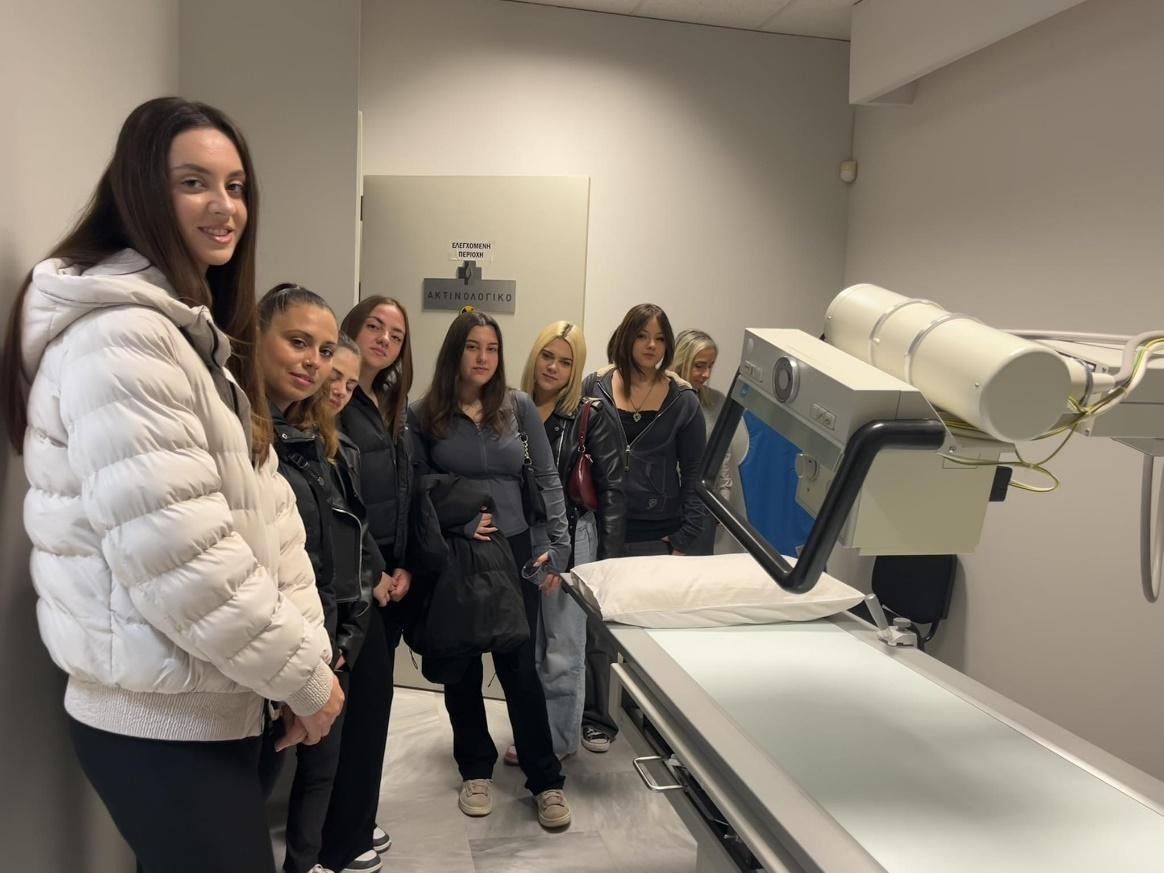 Η ειδικότητα Βοηθός Ακτινολογικών Εργαστηρίων επισκέφθηκε το Διαγνωστικό Κέντρο Β. Κατά την επίσκεψη, οι μαθήτριες είχαν την ευκαιρία να ξεναγηθούν στους χώρους του κέντρου από την κυρίαΜαρίαΖώγαλη, μαζί με έμπειρους τεχνολόγους ακτινολόγους. Ιδιαίτερη έμφαση δόθηκε στον μαγνητικό τομογράφο, όπου παρουσιάστηκαν ο τρόπος λειτουργίας του, η χρησιμότητά του στη διάγνωση, καθώς και τα βασικά τεχνικά του χαρακτηριστικά. Στη συνέχεια, οι μαθήτριες ενημερώθηκαν για τη λειτουργία και τον ρόλο των υπόλοιπων ακτινοδιαγνωστικών μηχανημάτων του κέντρου, όπως το ακτινολογικό μηχάνημα, ο μαστογράφος, η συσκευή μέτρησης οστικής πυκνότητας και ο ορθοπαντογράφος.